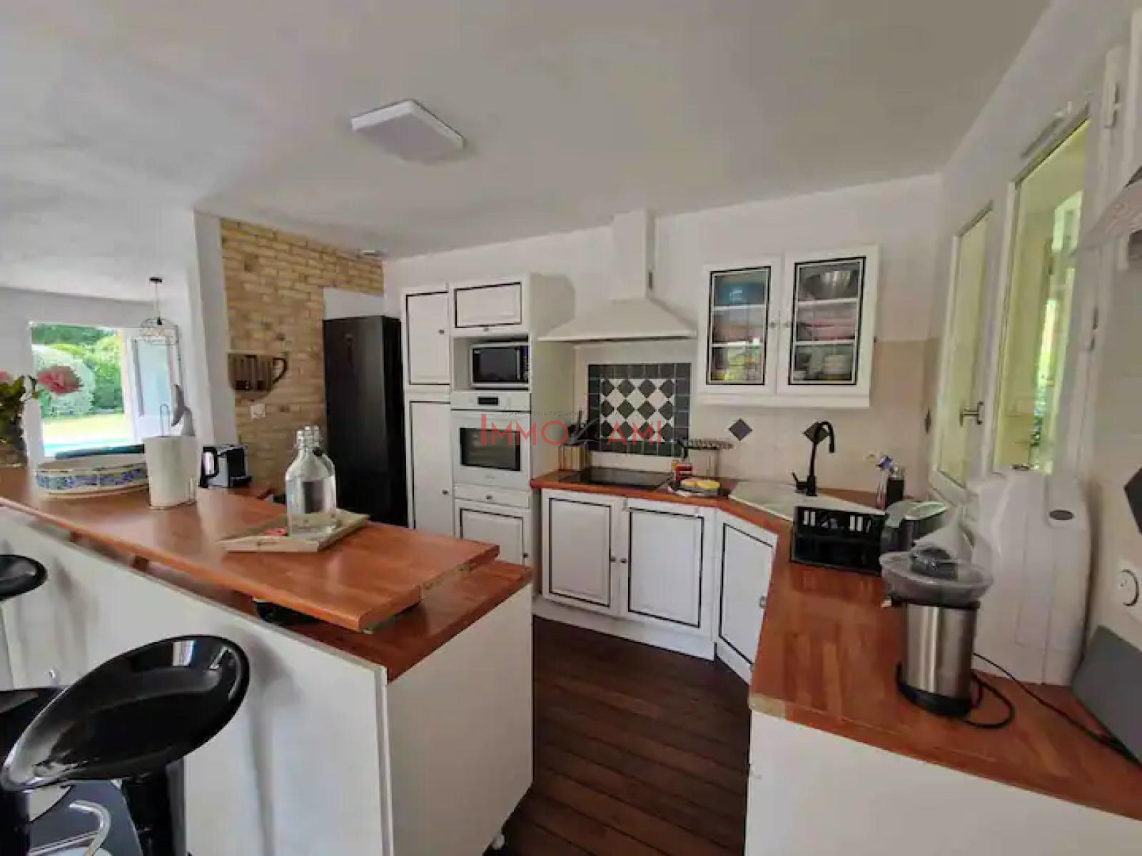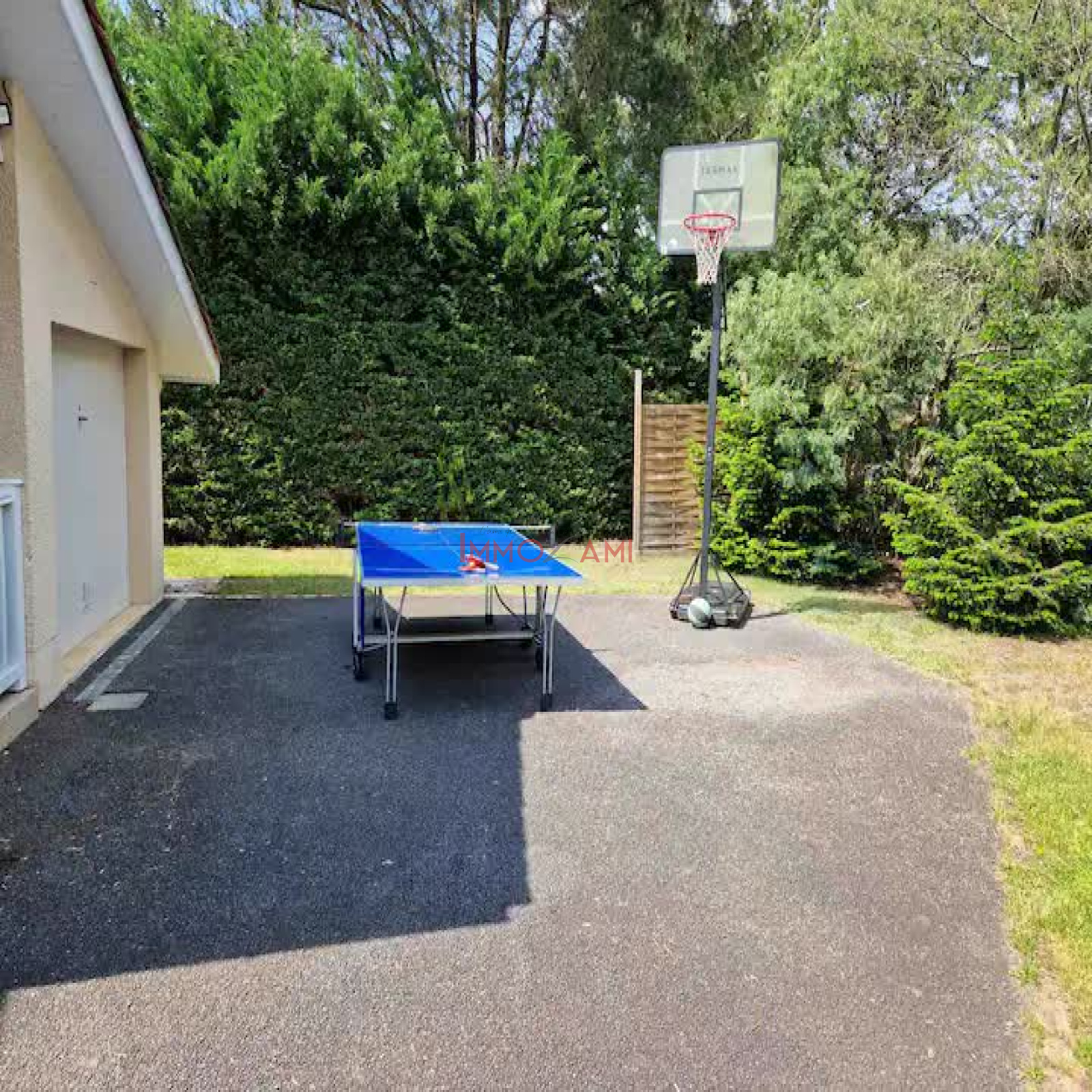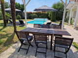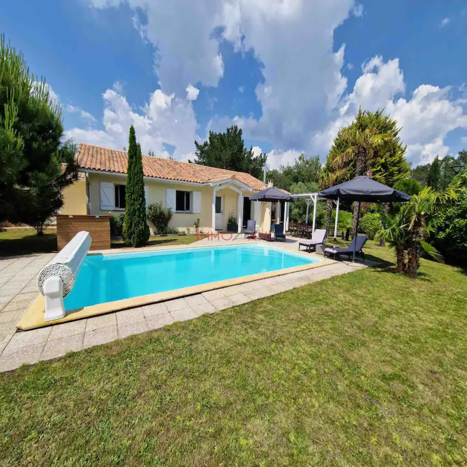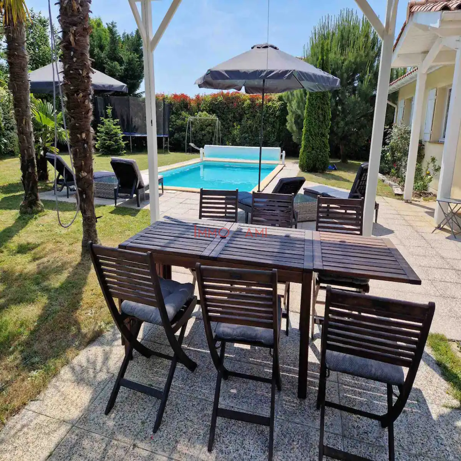 A l’extérieur, une grande piscine avec terrasse et barbecue pour profiter de l’été.
