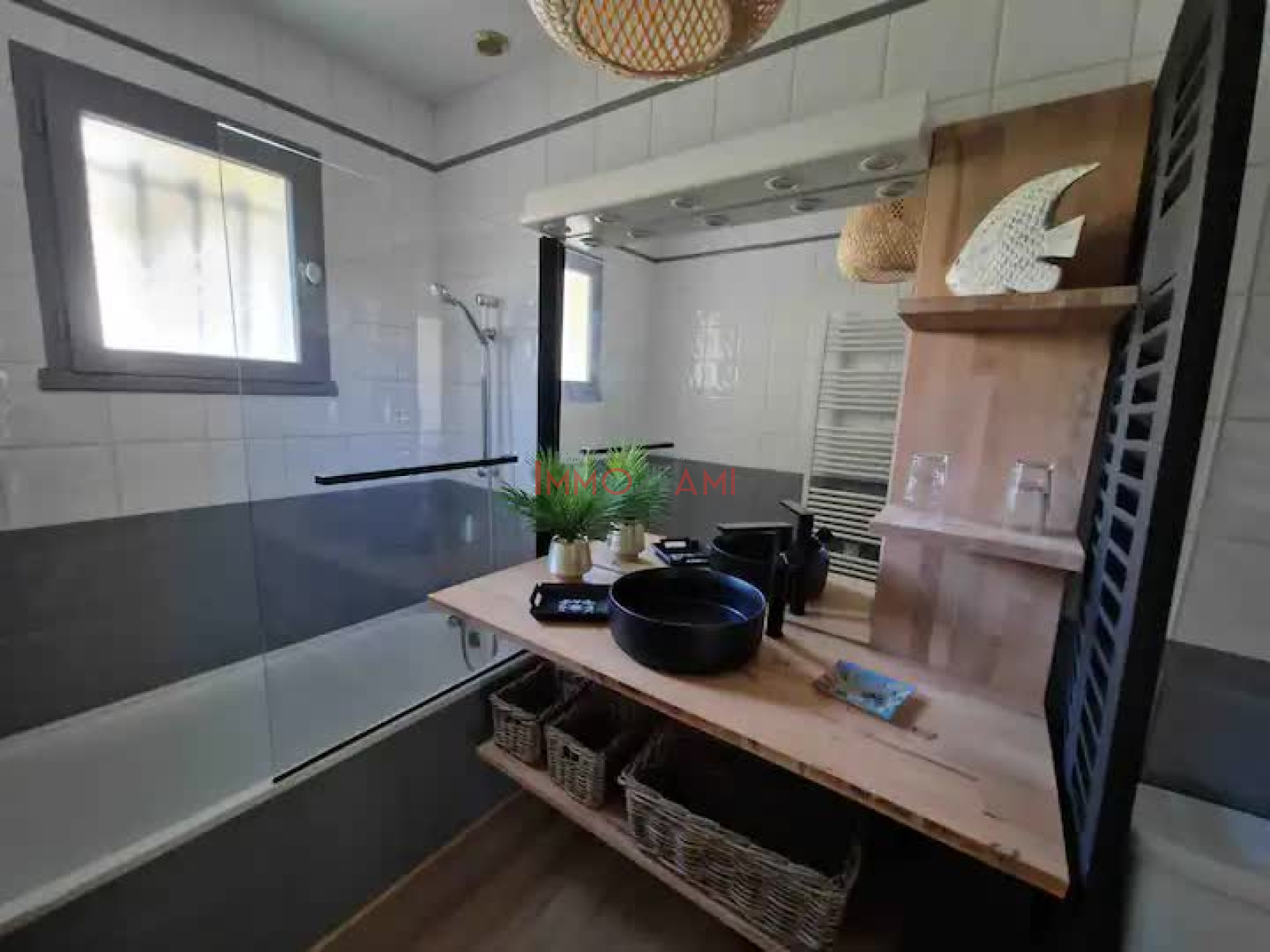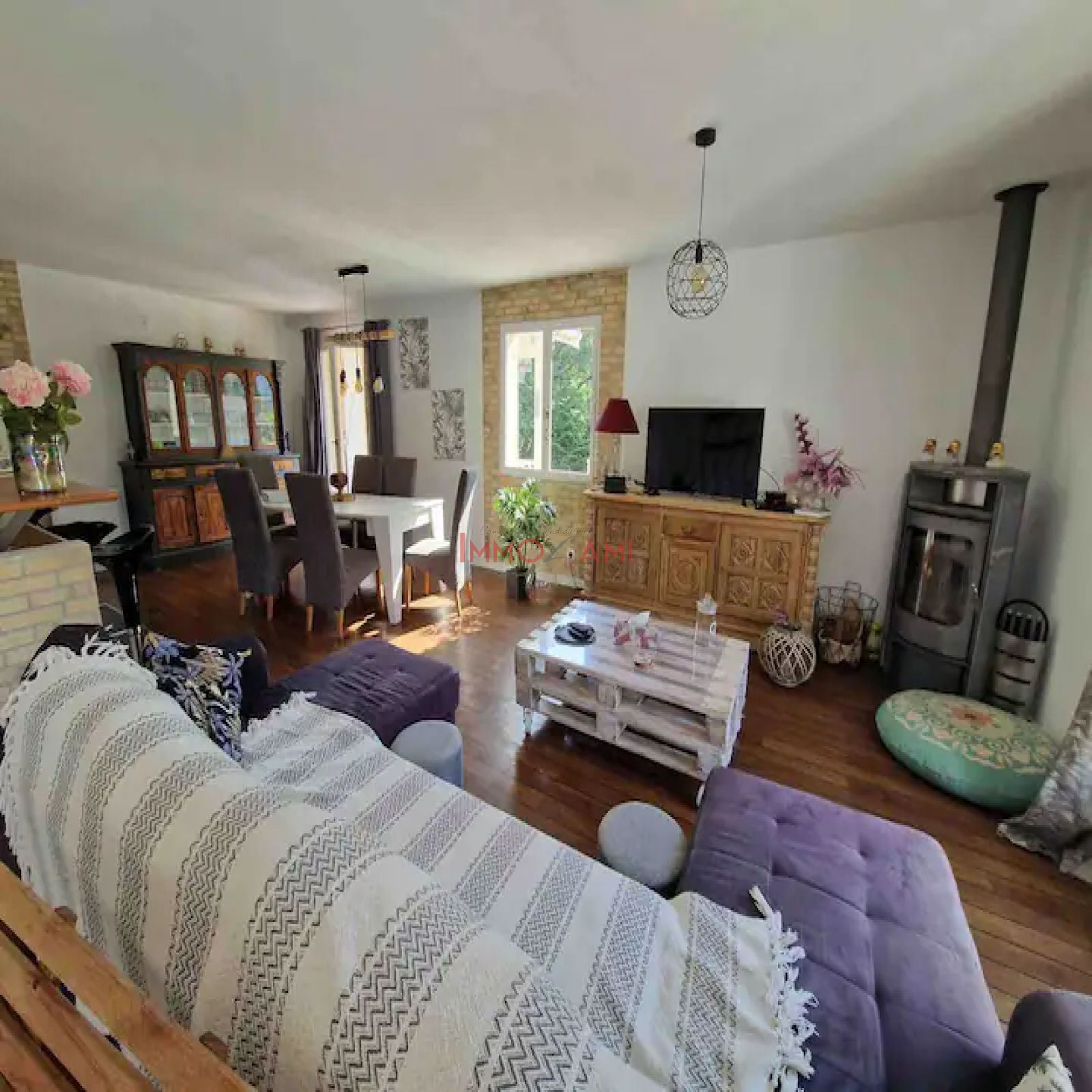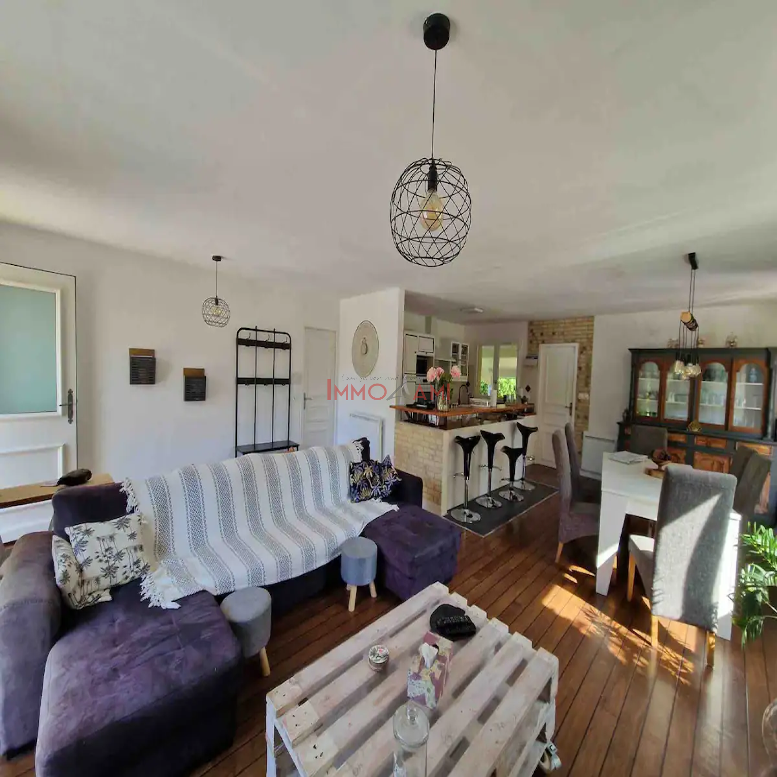 Elle se compose d’une entrée sur le séjour, une cuisine équipée ouverte, 3 chambres, deux wc, une salle d’eau et une salle de bain et une buanderie complète cette maison.
