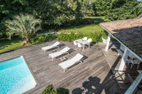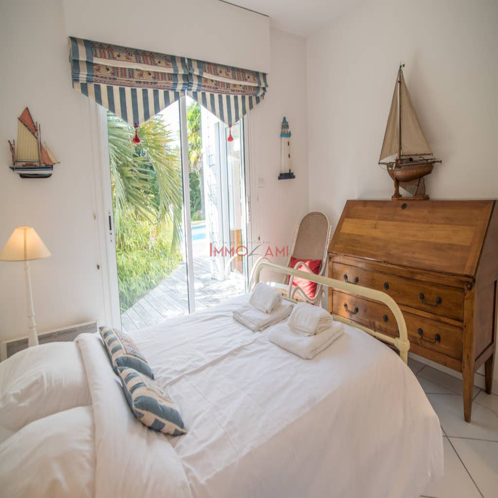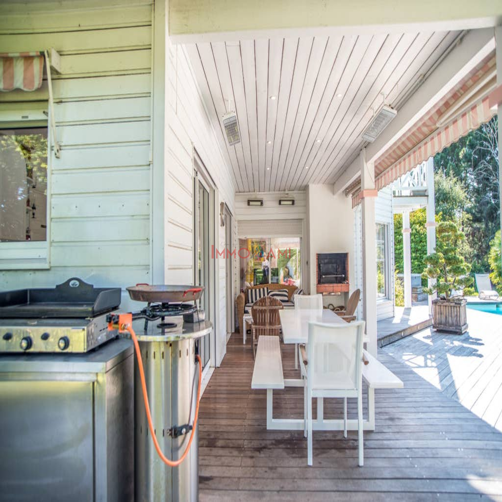 Pour l'extérieur : Il y a une petite cuisine d'extérieur avec plancha et barbecue, ainsi qu'un chauffage de terrasse au gaz pour profiter au maximum de vos soirées. Un local équipé d'un congélateur, d'une machine à glaçons, d'un lave-linge séchant et d'une douche pour les retours de plage, complètent l'équipement très complet de cette maison.
