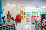 Son architecture légère en bois blanc, sa décoration très colorée, sa piscine et ses équipements extérieurs en font un lieu joyeux qui ravira toute la famille.