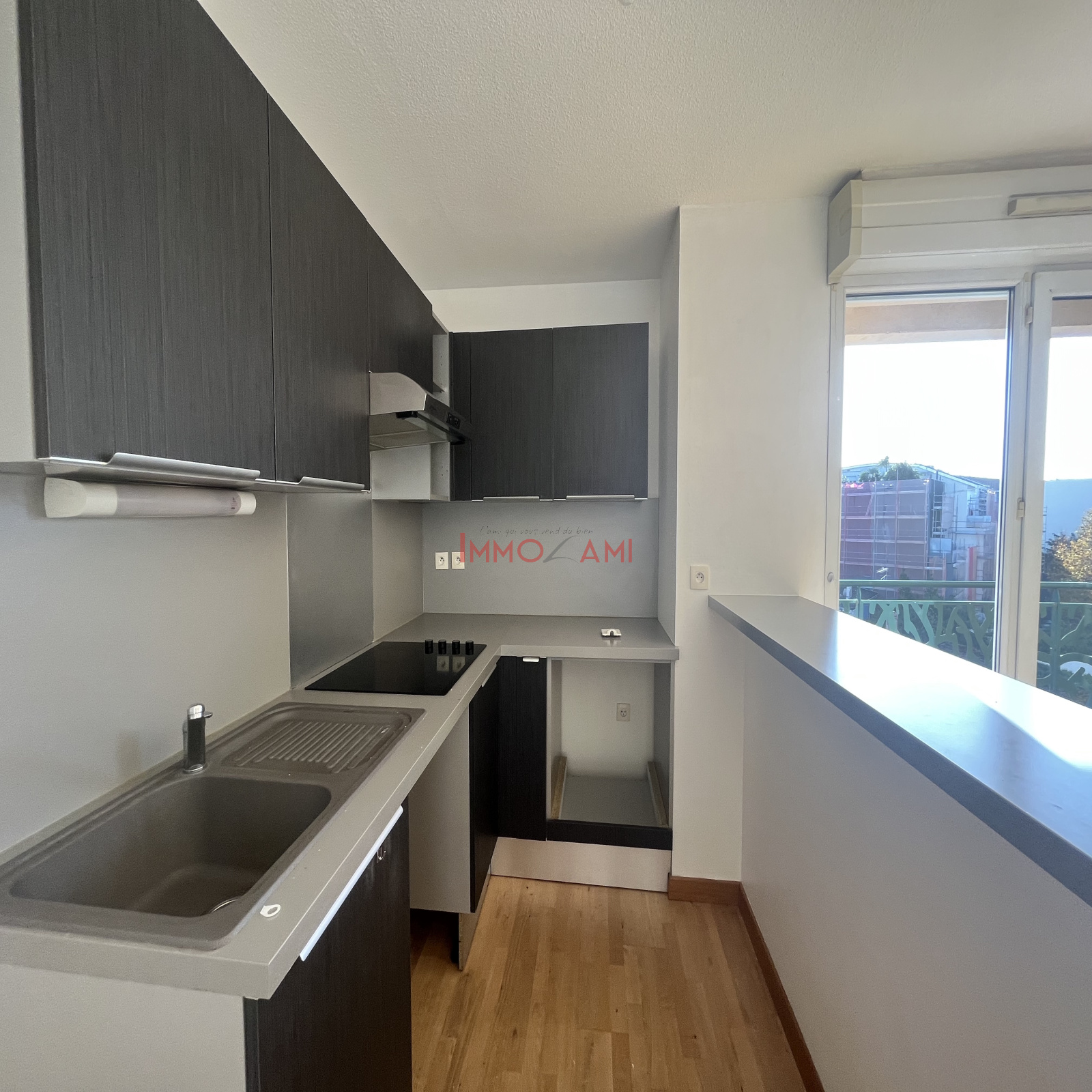 Cet appartement se trouve dans une résidence sécurisée avec ascenseur. L'appartement se compose d'une entrée sur séjour donnant sur une terrasse plein SUD, une cuisine semi équipée avec plaque de cuisson, hotte et son evier et un wc.