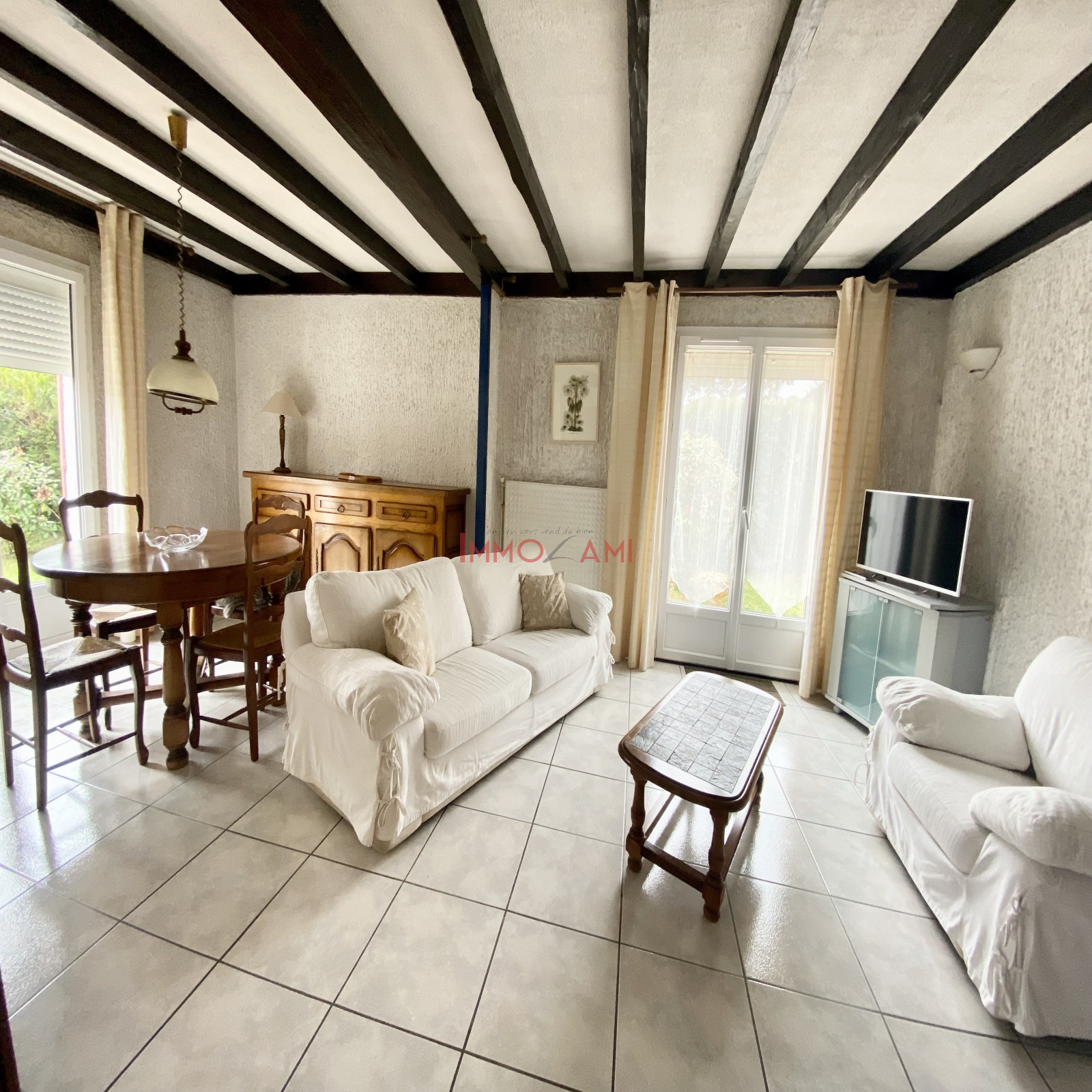 Maison individuelle en location annuelle meublée avec deux chambres et un garage sur la commune de La teste de Buch dans le quartier des Miquelots. Cette maison se compose d'une véranda avec climatisateur réversible, une entrée, un séjour/salle à manger, une cuisine équipée et séparée donnant sur la véranda et un garage attenant. Pour la partie nuit, deux chambres dont une avec placard, un wc indépendant et une salle d'eau avec double vasque. Un garage attenant complète cette maison ainsi qu'un lave linge et un sêche linge. Une cabane de jardin complète cette maison. Le loyer est de 1000€ + 35€ de charges pour la taxes ordures ménagères et l'entretien annuelle de la chaudière. Le gaz, l'electricité et l'eau sont à la charge du LOCATAIRE. Les honoraies pour le locataire sont de 936€ TTC. Visite possible exclusivement si dossier complet et valider en amont par mail sur immolami@gmail.com