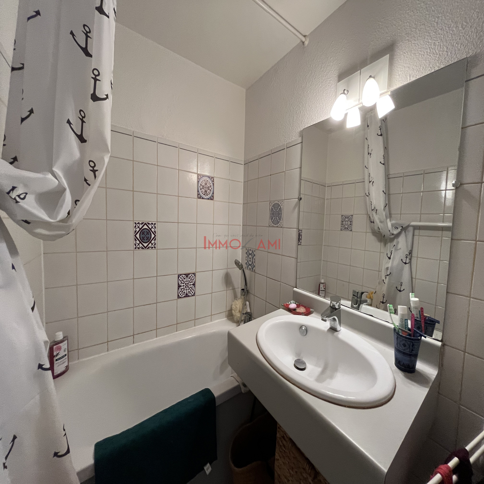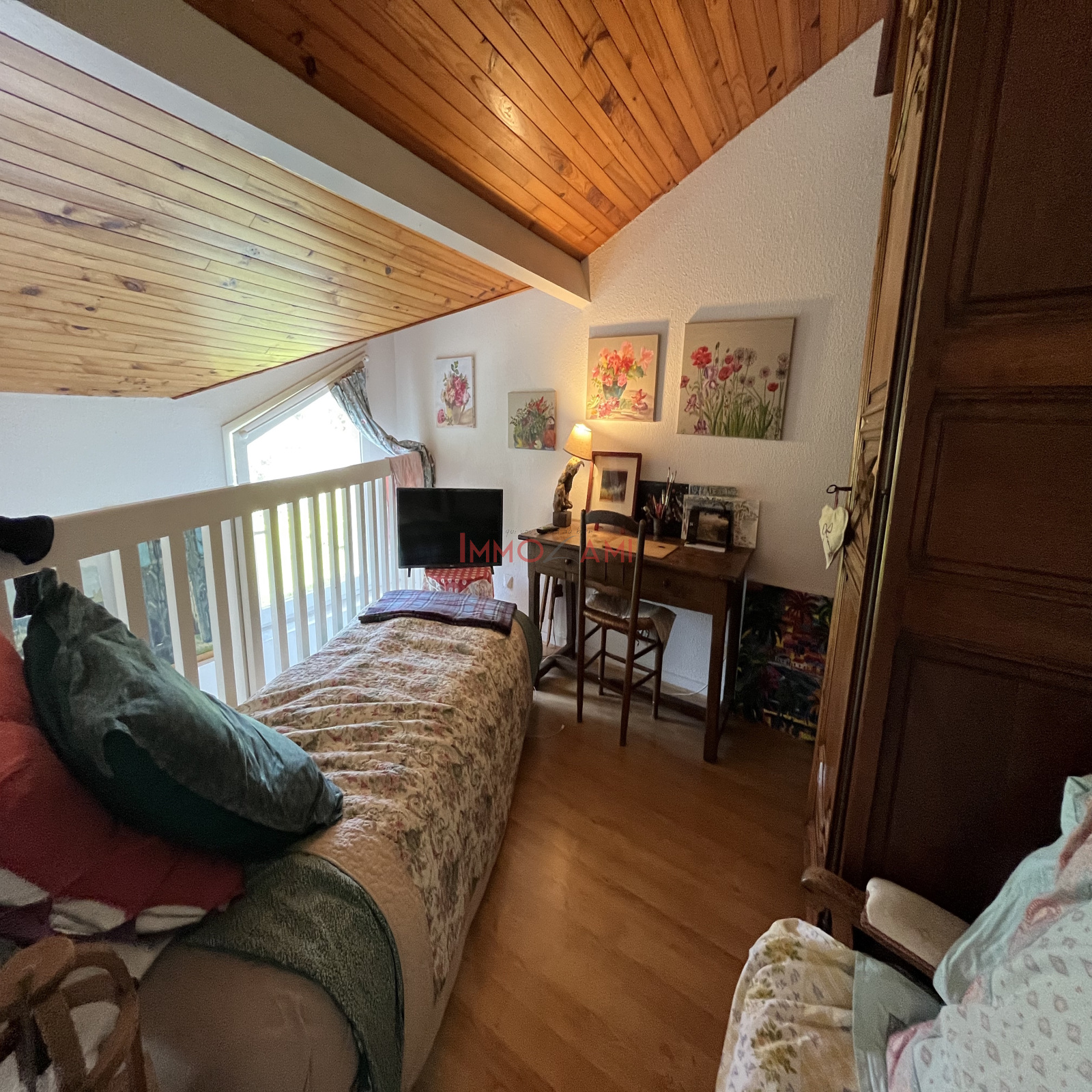 A l'étage, une mezzanine de plus de 9m2, une salle de bain avec son wc semi broyeur et une chambre.