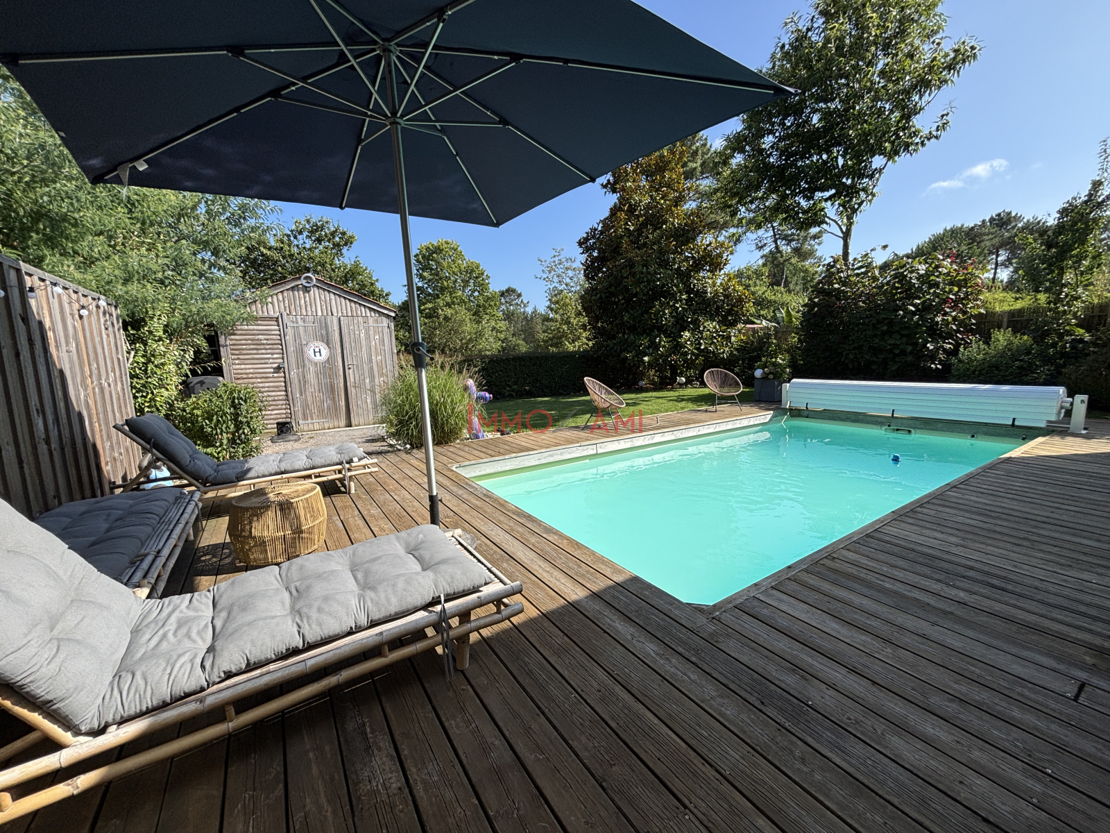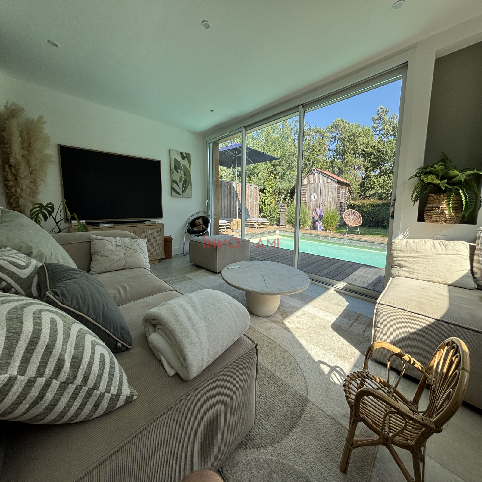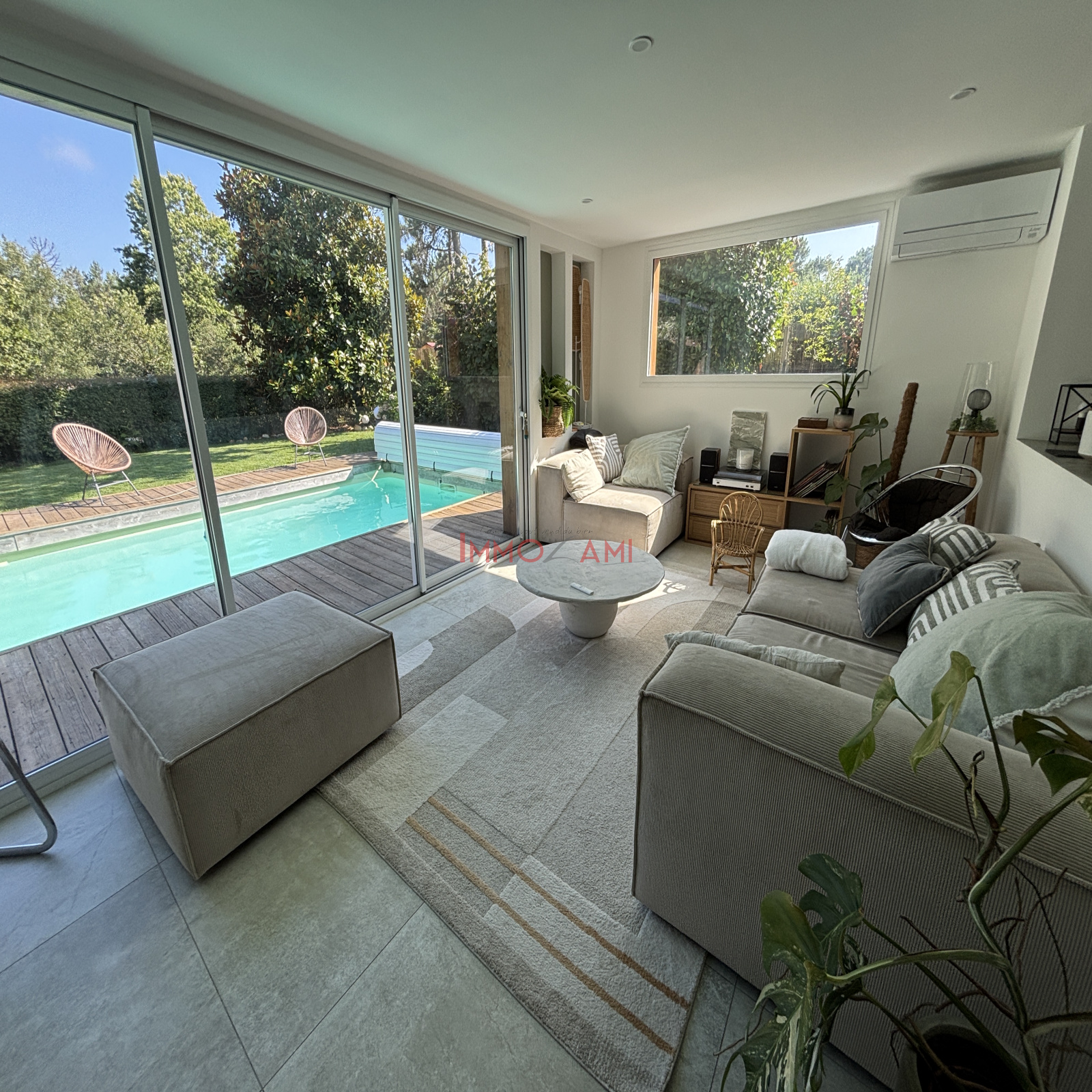 Exclusivité ImmoLami – Découvrez cette magnifique maison mitoyenne d’un côté, entièrement rénovée avec des prestations premium, située dans un environnement verdoyant au cœur du Golf de Gujan-Mestras, sur une parcelle d’environ 500 m². Avec une surface habitable de 135 m², cette propriété conjugue élégance, confort moderne et cadre d’exception. Rez-de-chaussée spacieux et lumineux Dès l’entrée, vous serez séduit par une pièce de vie de 60 m² baignée de lumière, composée : D’une salle à manger avec placards intégrés, D’une cuisine ouverte moderne et fonctionnelle avec cave à vin encastrée, D’un salon chaleureux donnant sur le jardin grâce à une baie vitrée de 4 mètres avec vue dégagée sur la piscine et le golf. Une belle chambre de 15 m² avec placard et salle d’eau privative (douche à l’italienne), ainsi qu’un espace bureau/buanderie de 15 m² complètent ce niveau. À l’étage : deux chambres, deux ambiances Une suite parentale de 18 m² avec dressing sur mesure et salle d’eau contemporaine Une deuxième chambre avec salle de bain attenante, idéale pour les enfants ou les invités Un WC suspendu indépendant Extérieurs soignés et pensés pour votre confort Terrain d’environ 500 m² Piscine chauffée 7 x 3,5 m avec volet életrique Grande terrasse en bois Jardin paysager avec arrosage automatique et puits foré Cabane de jardin pour le rangement Stationnement facile : enrobé privatif pouvant accueillir 4 véhicules Localisation idéale : calme, sécurisée et verdoyante, à deux pas des plages, du port de La Hume, des commerces, de la gare et du sentier du littoral. Les atouts de ce bien : Vue imprenable sur le green Prestations haut de gamme, rénovation récente 3 chambres dont 2 suites Jardin paysagé + piscine chauffée Grand espace de vie lumineux de 60 m² Visite sur rendez-vous uniquement le samedi avec l’agence ImmoLami, spécialiste des biens premium sur le Bassin d’Arcachon. Contactez-nous dès maintenant ou visitez www.immolami.com pour plus de photos, d'informations et découvrir d'autres biens d’exception à Gujan-Mestras et ses environs.
