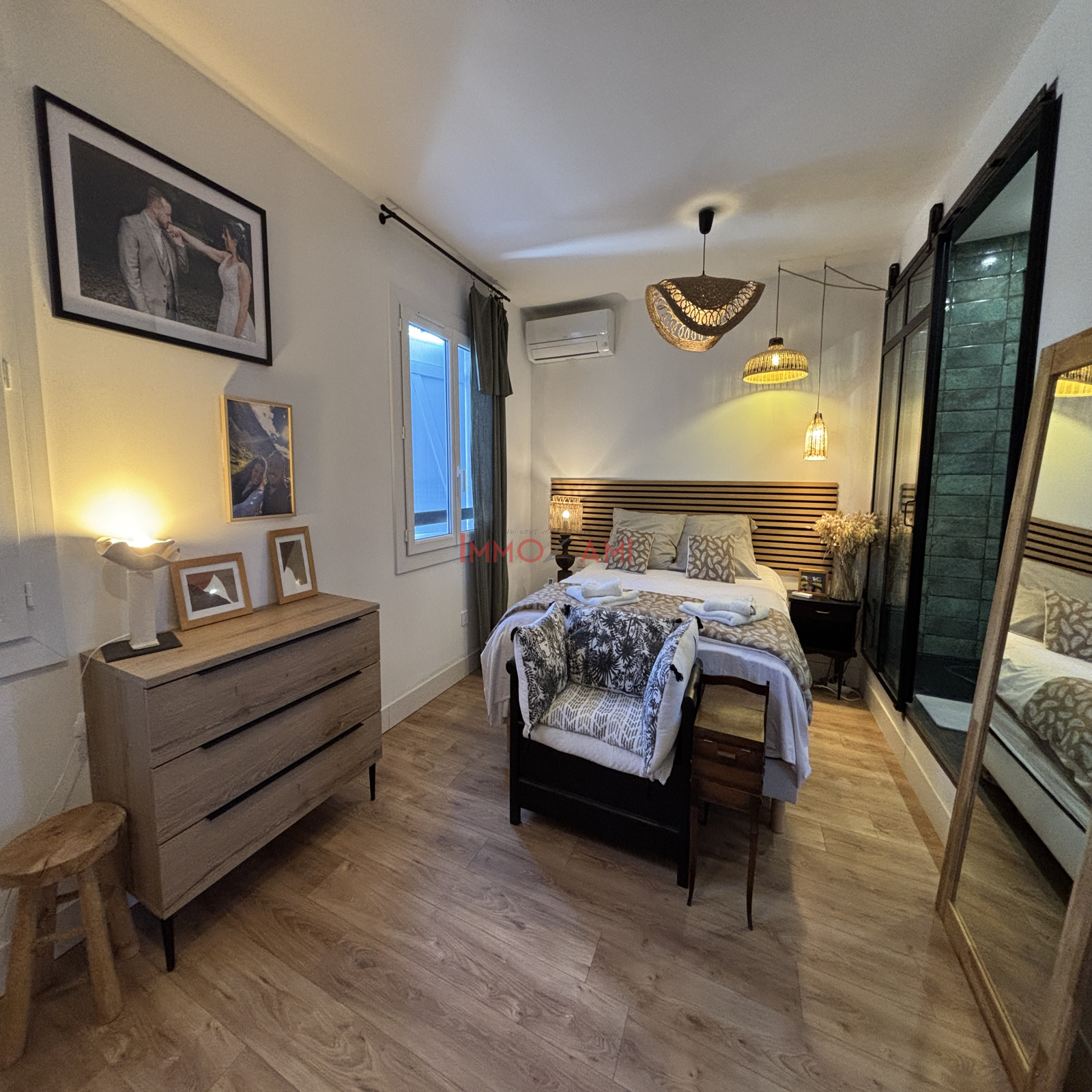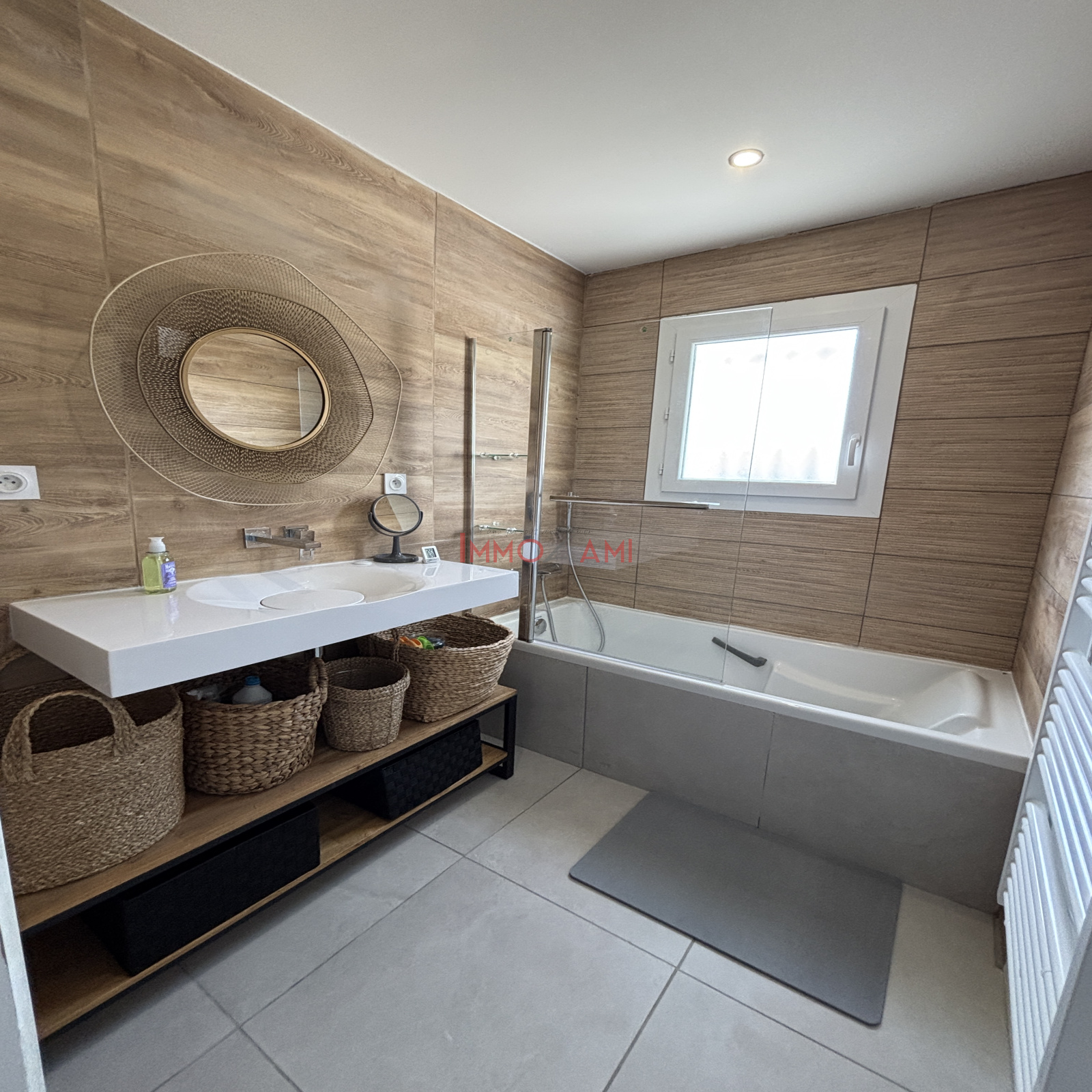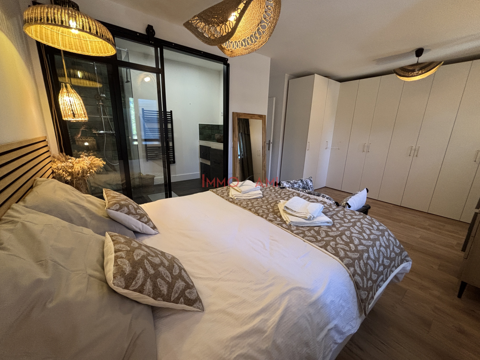 Exclusivité ImmoLami – Découvrez cette magnifique maison mitoyenne d’un côté, entièrement rénovée avec des prestations premium, située dans un environnement verdoyant au cœur du Golf de Gujan-Mestras, sur une parcelle d’environ 500 m². Avec une surface habitable de 135 m², cette propriété conjugue élégance, confort moderne et cadre d’exception. Rez-de-chaussée spacieux et lumineux Dès l’entrée, vous serez séduit par une pièce de vie de 60 m² baignée de lumière, composée : D’une salle à manger avec placards intégrés, D’une cuisine ouverte moderne et fonctionnelle avec cave à vin encastrée, D’un salon chaleureux donnant sur le jardin grâce à une baie vitrée de 4 mètres avec vue dégagée sur la piscine et le golf. Une belle chambre de 15 m² avec placard et salle d’eau privative (douche à l’italienne), ainsi qu’un espace bureau/buanderie de 15 m² complètent ce niveau. À l’étage : deux chambres, deux ambiances Une suite parentale de 18 m² avec dressing sur mesure et salle d’eau contemporaine Une deuxième chambre avec salle de bain attenante, idéale pour les enfants ou les invités Un WC suspendu indépendant Extérieurs soignés et pensés pour votre confort Terrain d’environ 500 m² Piscine chauffée 7 x 3,5 m avec volet életrique Grande terrasse en bois Jardin paysager avec arrosage automatique et puits foré Cabane de jardin pour le rangement Stationnement facile : enrobé privatif pouvant accueillir 4 véhicules Localisation idéale : calme, sécurisée et verdoyante, à deux pas des plages, du port de La Hume, des commerces, de la gare et du sentier du littoral. Les atouts de ce bien : Vue imprenable sur le green Prestations haut de gamme, rénovation récente 3 chambres dont 2 suites Jardin paysagé + piscine chauffée Grand espace de vie lumineux de 60 m² Visite sur rendez-vous uniquement le samedi avec l’agence ImmoLami, spécialiste des biens premium sur le Bassin d’Arcachon. Contactez-nous dès maintenant ou visitez www.immolami.com pour plus de photos, d'informations et découvrir d'autres biens d’exception à Gujan-Mestras et ses environs.