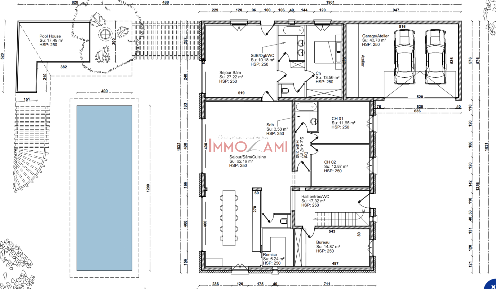 Espaces fonctionnels : bureau, cellier, dégagements pratiques