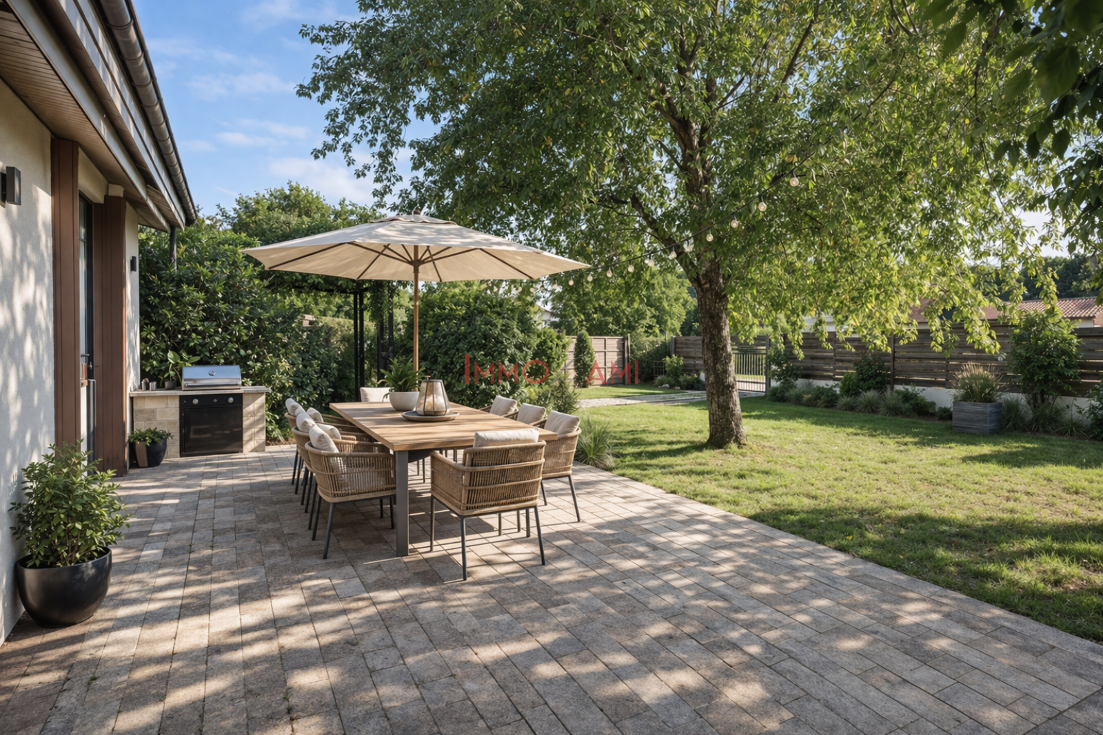 La terrasse offre un coin détente idéal pour les repas d’été ou les moments en famille.