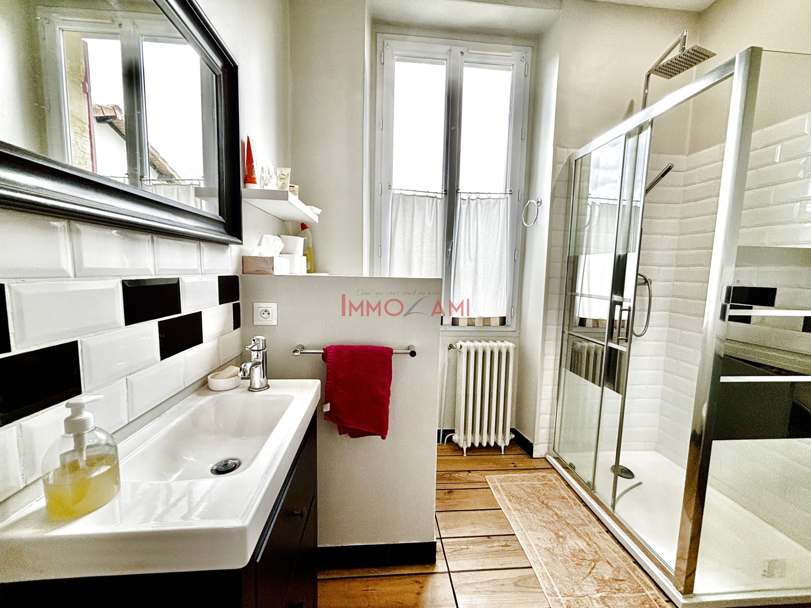 - Une pièce de vie lumineuse de 57 m², agrémentée de hauts plafonds