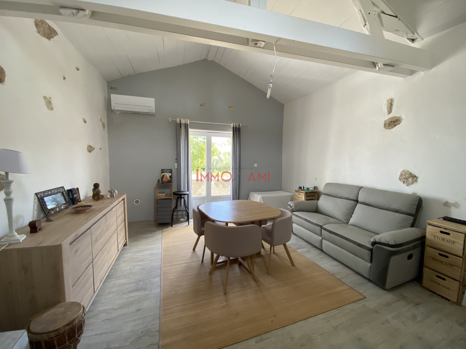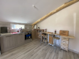 Pour la seconde maison, une maison entièrement restaurée qui se compose d'une grande cuisine, une belle pièce de vie avec un toit catédral, une chambre avec rangement et une salle de bain avec douche à l'italienne, baignoire et wc semi broyeur.