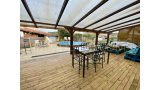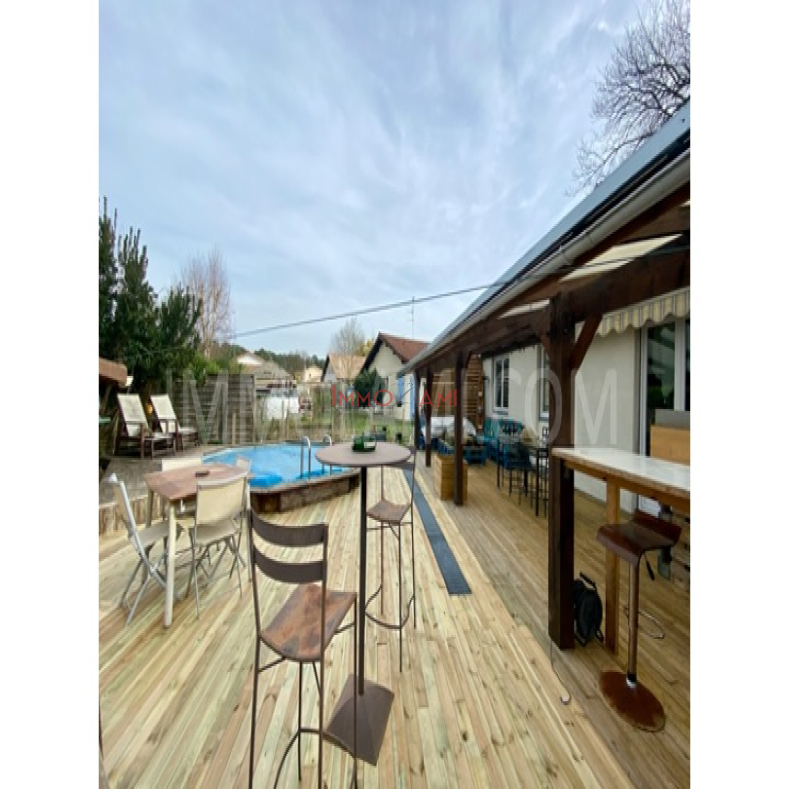 A l'extérieur , un coin terrasse avec piscine sur un vaste terrain de 1036 m2.