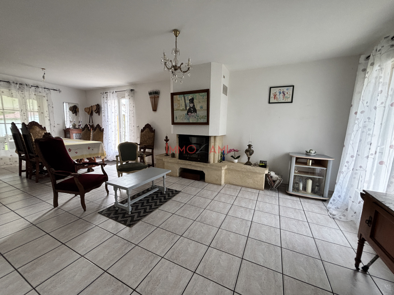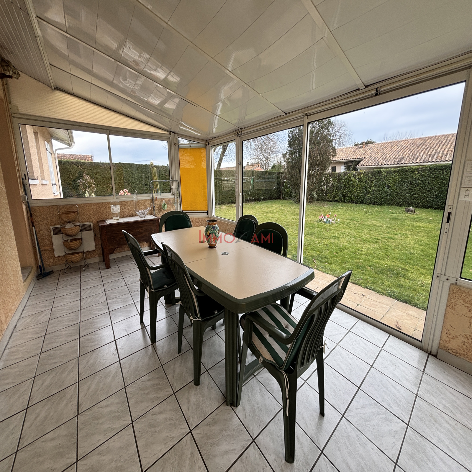 Les pièces de vie sont revêtues de carrelage, pratique et facile d’entretien.
