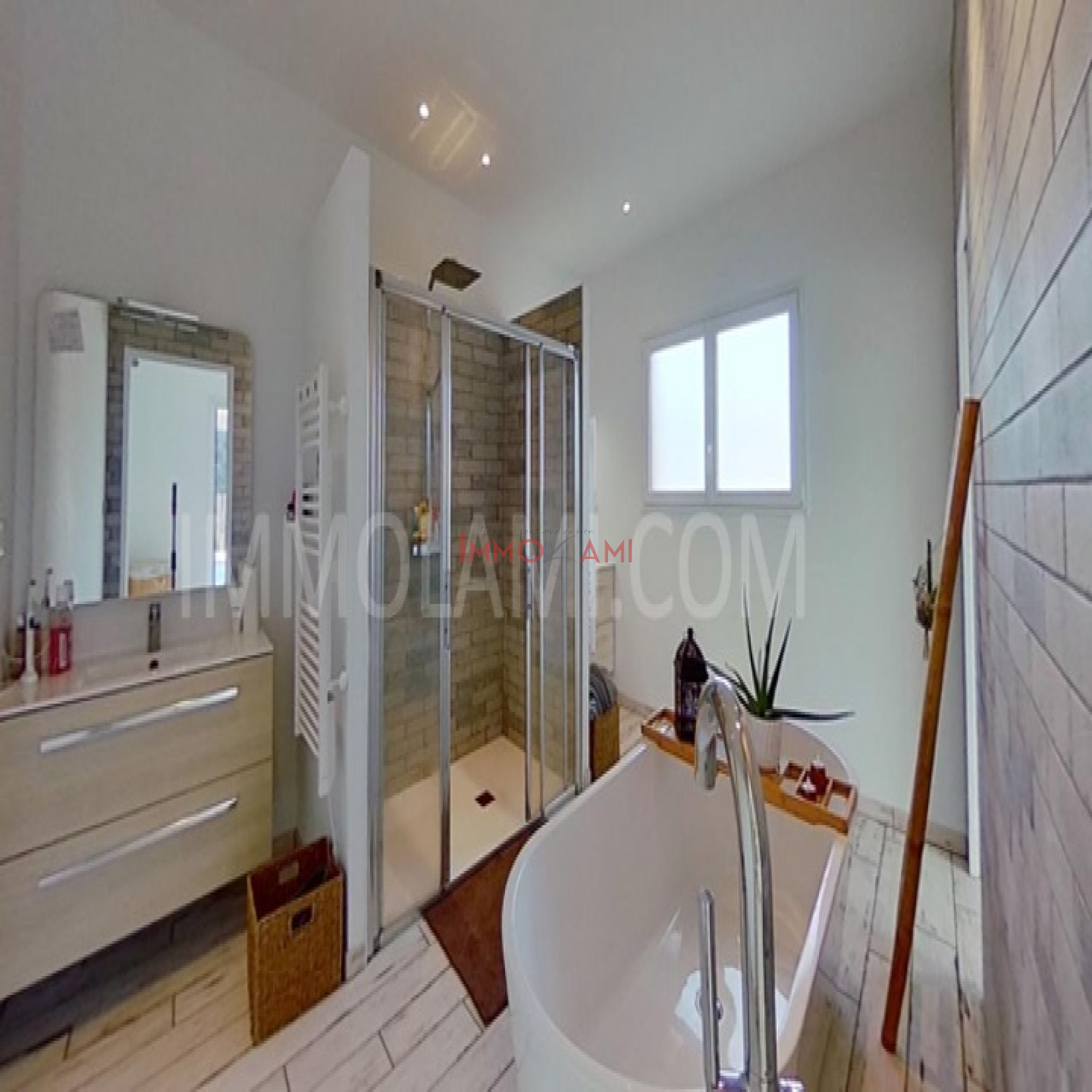 Elle se compose d'une entrée avec placard, d'un vaste séjour lumineux donnant sur l'extérieur,d'une cuisine ouverte avec cellier attenant,de trois chambres avec placards dont une suite parentale et sa salle de bains spacieuse,
