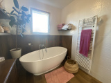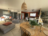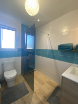 Cette maison récente se compose d'une entrée, une vaste pièce de vie lumineuse avec cuisine équipée, un cellier, une suite parentale avec placard et salle d'eau avec wc, deux chambres avec placard et une salle de bain avec baignoire et douche à l'italienne.
