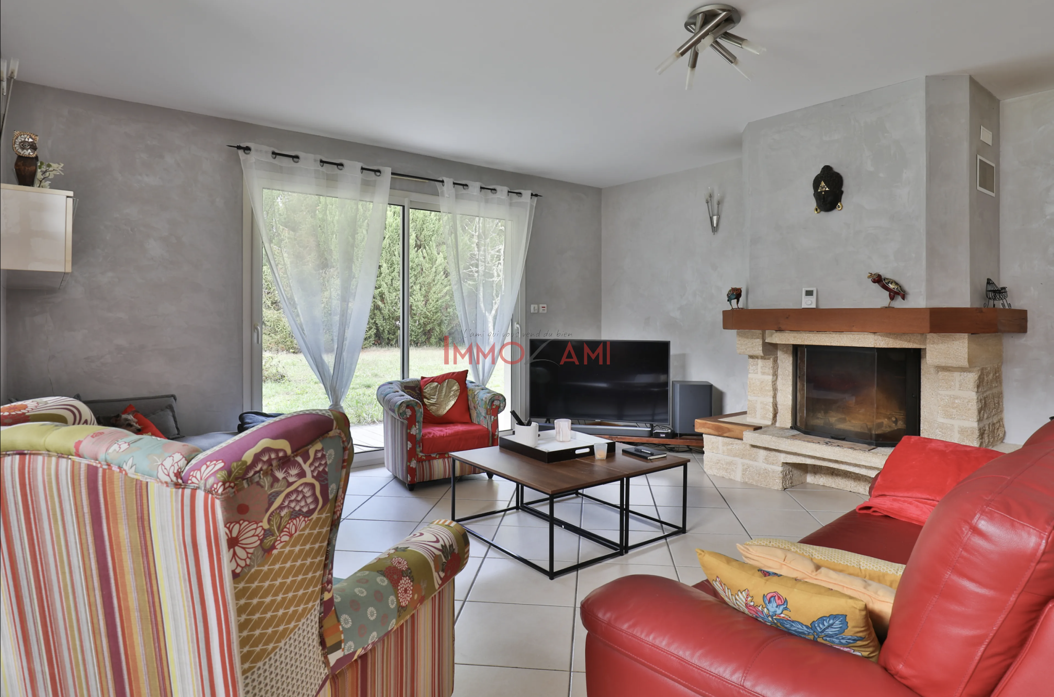 Implantée sur un terrain arboré de 2 400 m², la maison dispose d’un grand jardin clos, parfaitement entretenu et orienté plein sud.