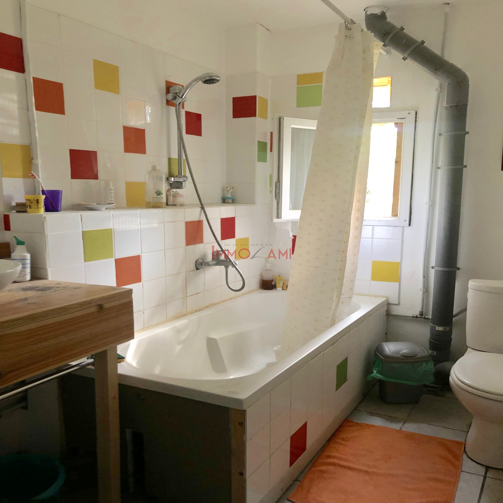 Cette maison a rafraichir se compose au rdc, d'une entrée donnant sur un séjour lumineux avec son poele ouvert sur une cuisine équipée, une suite parentale avec salle de bain, wc et placard, un placard, une buanderie et un bureau.