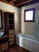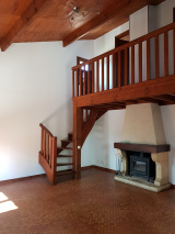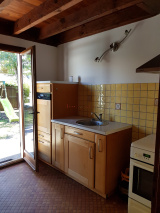 Cette maison se compose d'un séjour avec une belle hauteur sous plafond, d'une cuisine équipée, deux chambres au rdc, une salle de bain et un wc.